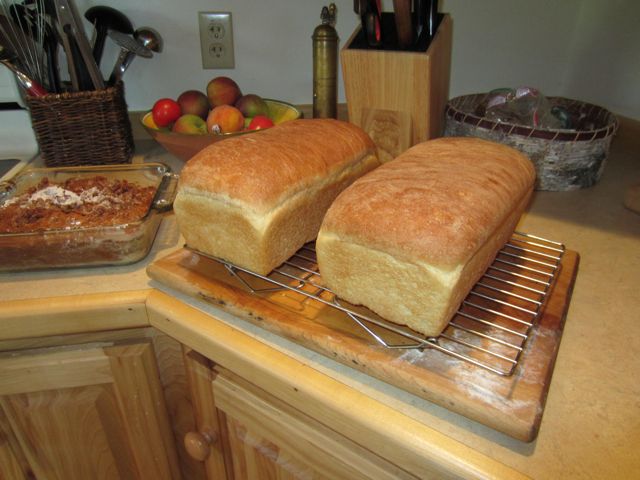 I maintain the habit adopted on Deal Island of baking almost all our bread, english muffins and bagels. I’s a good thing since bread always gets crushed in the backpack and we still have to walk over the bridge. There’s actually very little hands-on time for bread baking and I use a fool proof recipe that for better or worse, tastes like Wonder bread. This is a far cry from my early days of bread baking in the ’80’s when failed loaves could kill the chipmunks that found them tossed outside the house.