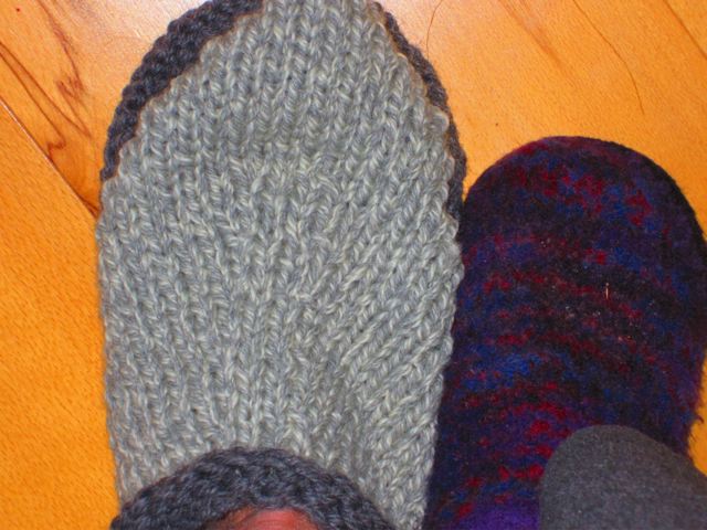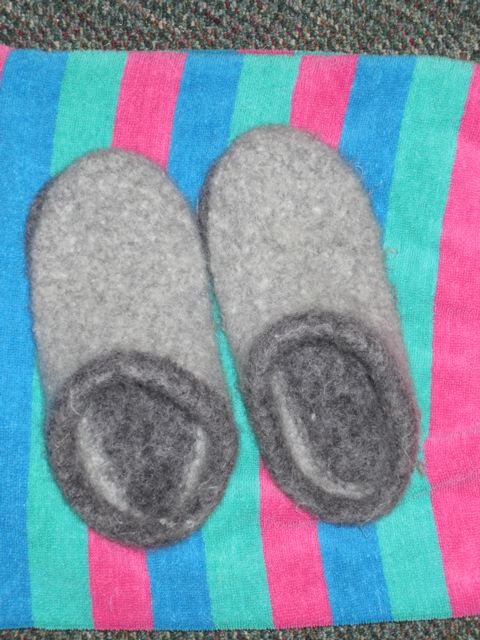 I finished knitting the second clog, felted them and gave them to their recipient, who proceeded to wear them while wet to form them to her feet. What a trooper.