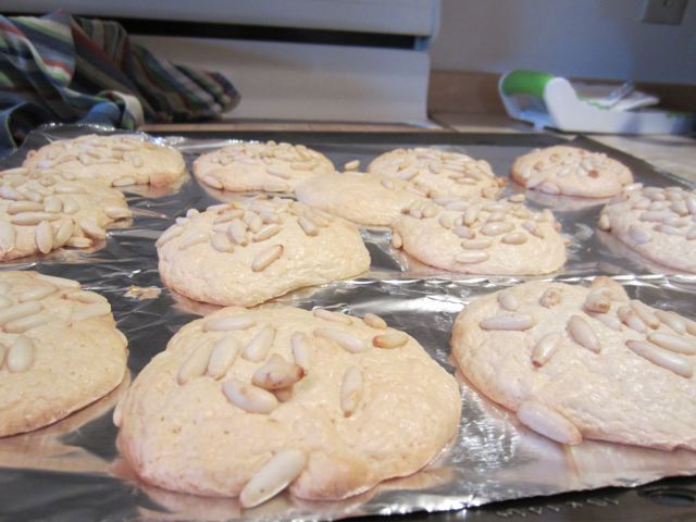 Pignoli cookies are an enigma. This recipe has worked for me in the past but something changed and the cookies always fell flat. This time I added cream of tartar to stabilize the egg whites and they seemed to hold up to the test.