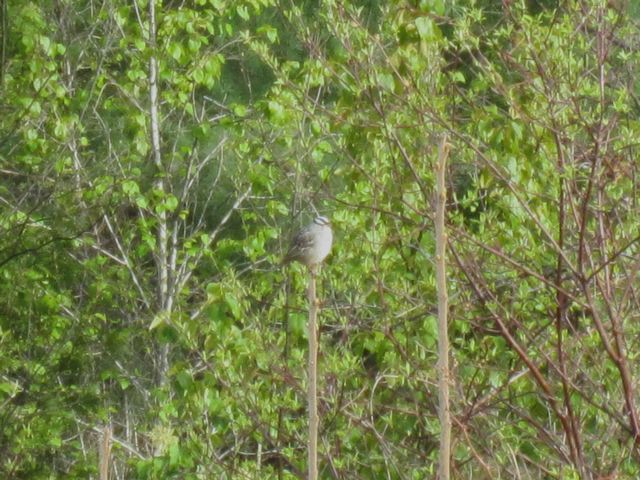 1. We have Rose-Breasted Grosbeaks and White Crowned sparrows here as well. The Rose-Breasted will be apparent all summer: the White Crowneds will disappear although they may just go in to hiding.