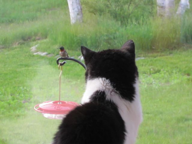 We all enjoy birdwatching at our house. There’s an abundance of activity right outside. Shirley watched this cute, unsuspecting hummingbird for a while and it’s hard to capture her attention these days, since she’s about 16 years old.