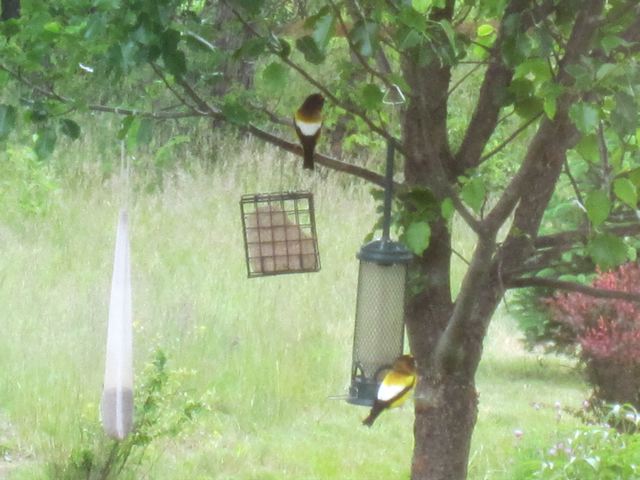 I saw a goldfinch on steroids the other day on my drive to work. Its coloring reminded me of a bird wearing a doctoral hood but I only had a brief glimpse of it on the roadside. They came to visit the feeder and posed for photos. They are not jacked goldfinches but Evening Grosbeaks. Sweet.