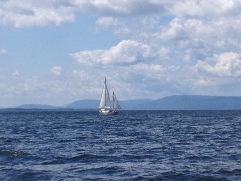 In more ways than one. We are sailing again, on Lake Champlain. As pretty as Maine without lobster traps. In fact the lake is often more than a hundred feet deep.