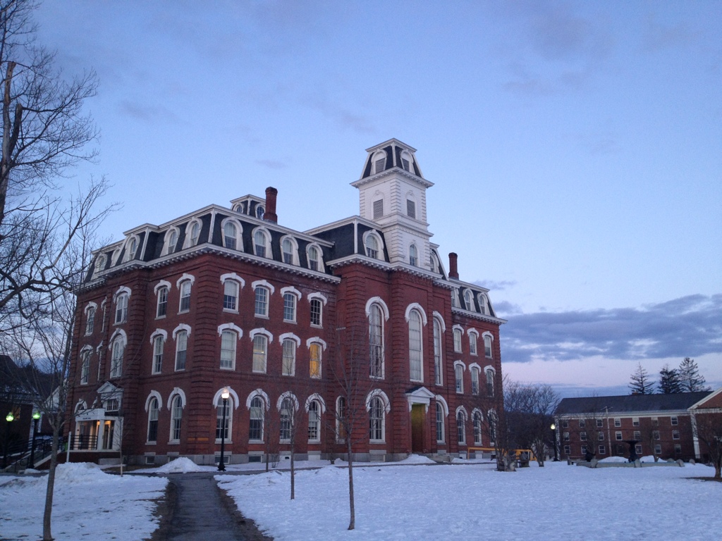 There’s a lovely village green on the campus of the Vermont College of Fine Arts, where people and canines play frisbee in the snow.