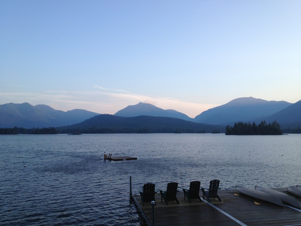 The mountain view was obscured by fog our first day. That night I was awakened by something skittering around and the noticed the flashing lights outside and went out and sat by the lake for an hour. Even if it was lightening, it was awesome.