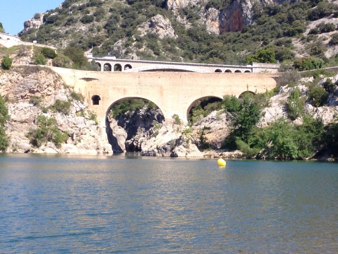 Instead I had a camera. We crossed a beautiful bridge built in the year 800 AD. Unfortunately, a good part of the walk was along a busy road but a path came and went along the river L’Herault.