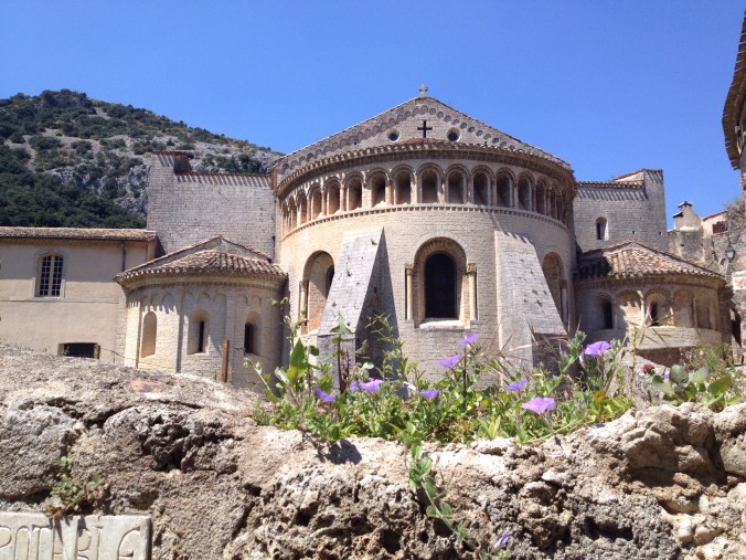 I’ve had an inkling that I would like to make a pilgramage to Compestello along “the way”. It turns out we are staying in a town along one of the paths, specifically GR653. So we walked 4.7 miles to the next town, St. Guilhem le Desert, along the route today. It was spectacular and moving. We walked from one Abbey to the next on a path that has been followed for perhaps a thousand years.