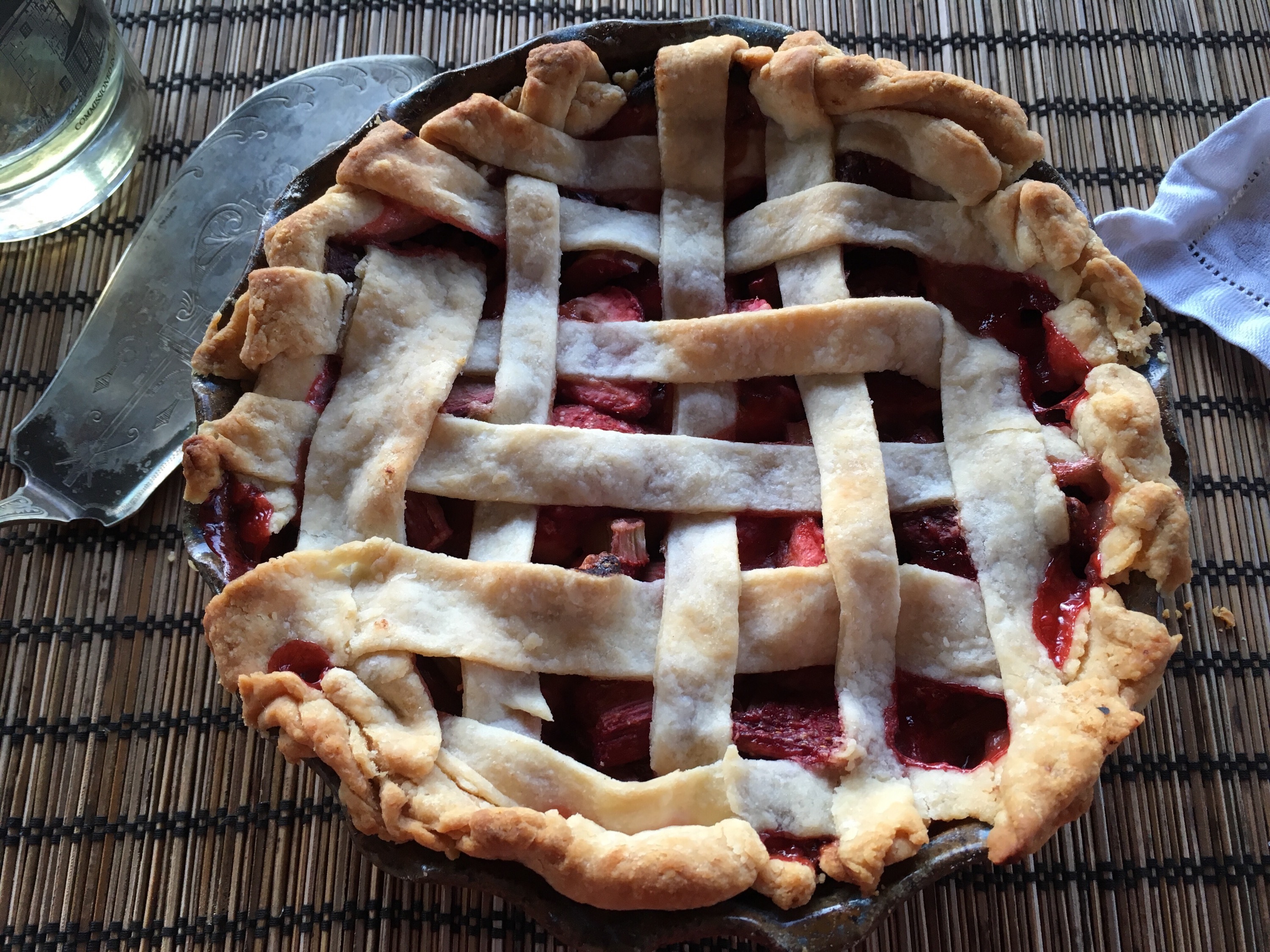 My last strawberry rhubarb pie had a 2 x 2 twill crust and was delicious.
