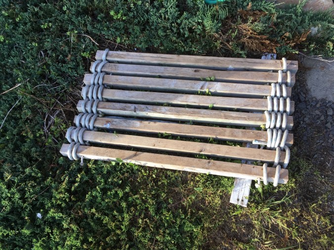 Our outdoor shower mat became loose so I wove the boards together in a plain weave.