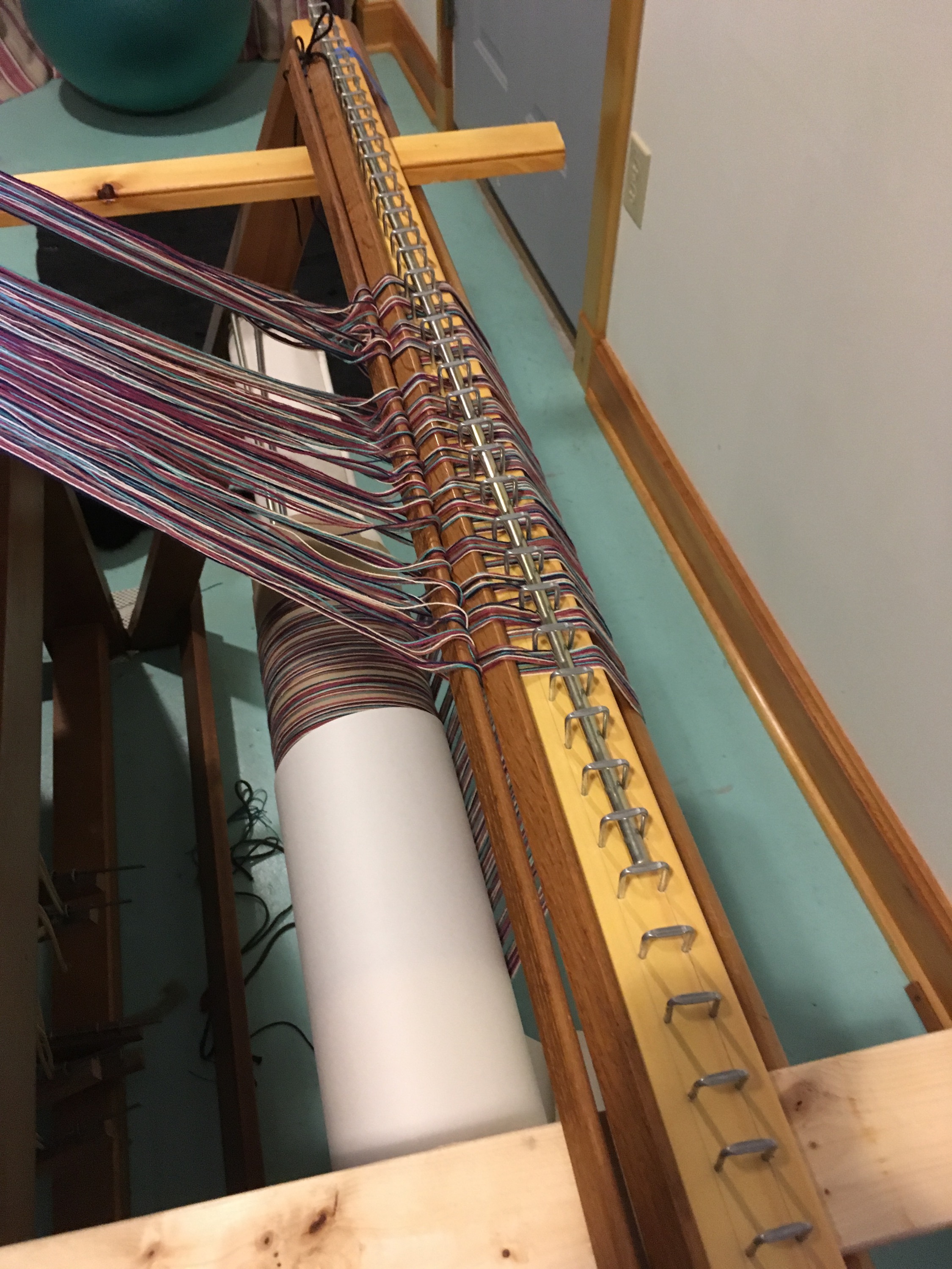 They are warped back to front and I made this nifty raddle and set it up in an ingenious way I learned at Red Stone Glen.