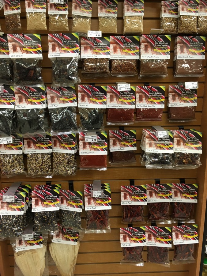 We know we’re on the west coast. The grocery store has a wall full of different chiles.