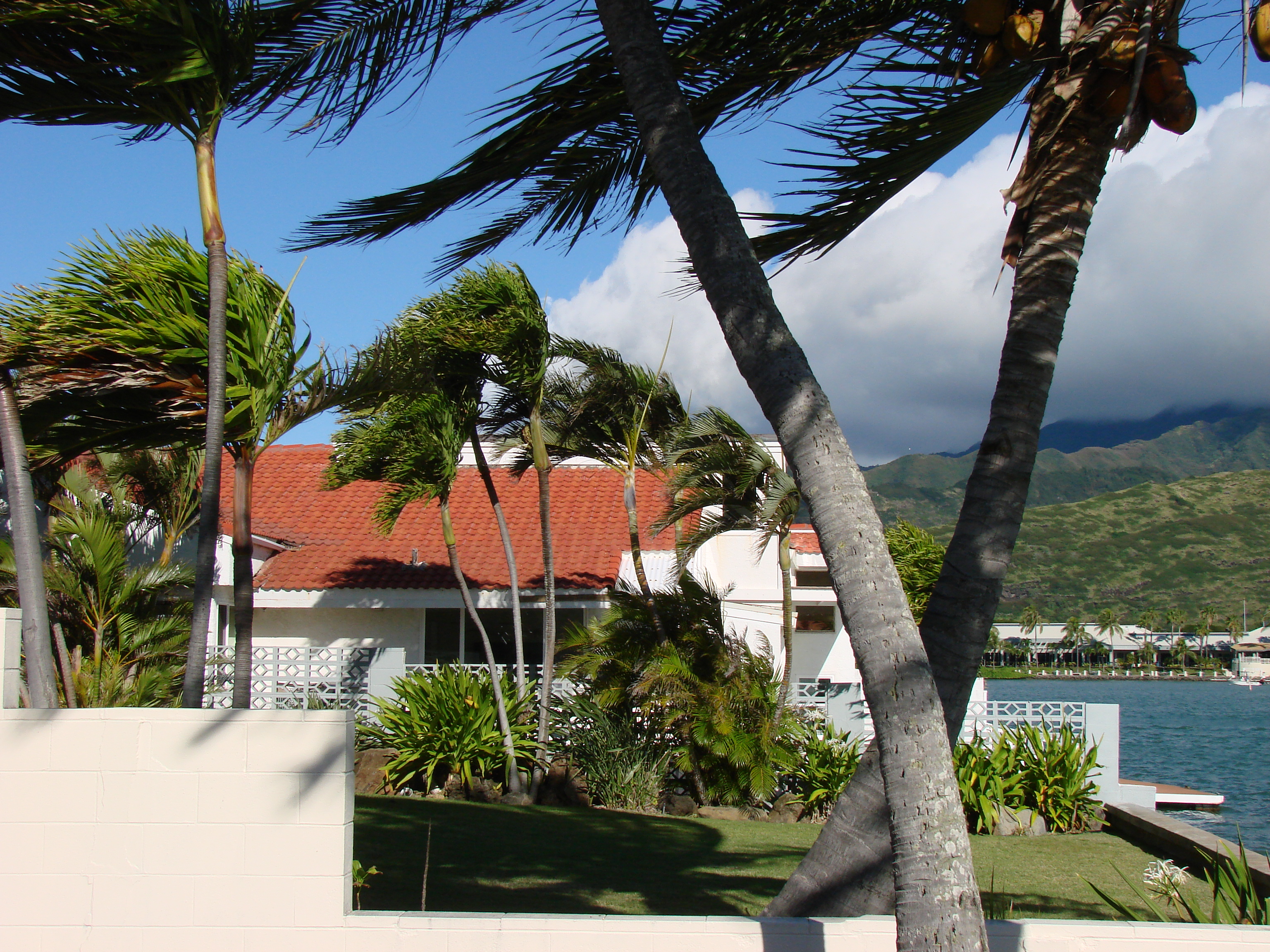 Tim found a lovely cottage on a bay in Oahu. It really is fabulous and has a lovely view of … Costco.