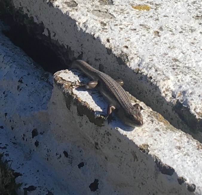 Meanwhile, back at the ranch, skinks abound. I have seen their burrows in the back of the caretakers residence and find them all over the island.
