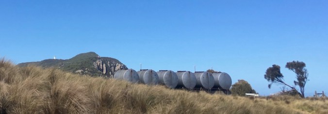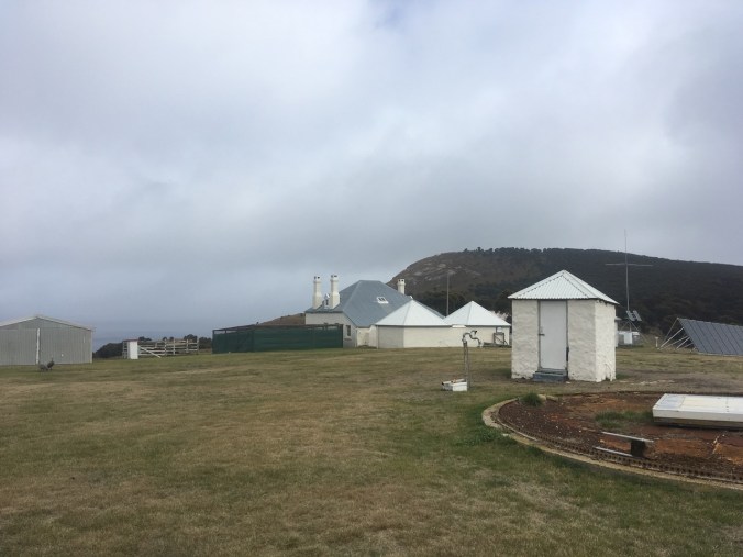 Here’s a reverse of the first photo looking up towards Barn Hill. You can see part of the solar array that provides our power on the right. It encourages me to use all the electric appliances in the house. I have used the bread maker, rice cooker and slow cooker. Tim doesn’t follow me around turning lights off as much as he does at home. The garden is enclosed in green screen to block the wind and keep most of the animals out. It’s fully enclosed with chicken wire and netting. To the left is the workshop, which is organized quite well this year. We’ve spent plenty of time working on projects in there in bad weather. It sings in the wind. The Museum has a wonderful collection and is housed in the nicest building with the three chimneys. It is partially obscured by the paint and fuel sheds. In the foreground is an old pump house, tank site and very important plumbing fixture for our water supply.