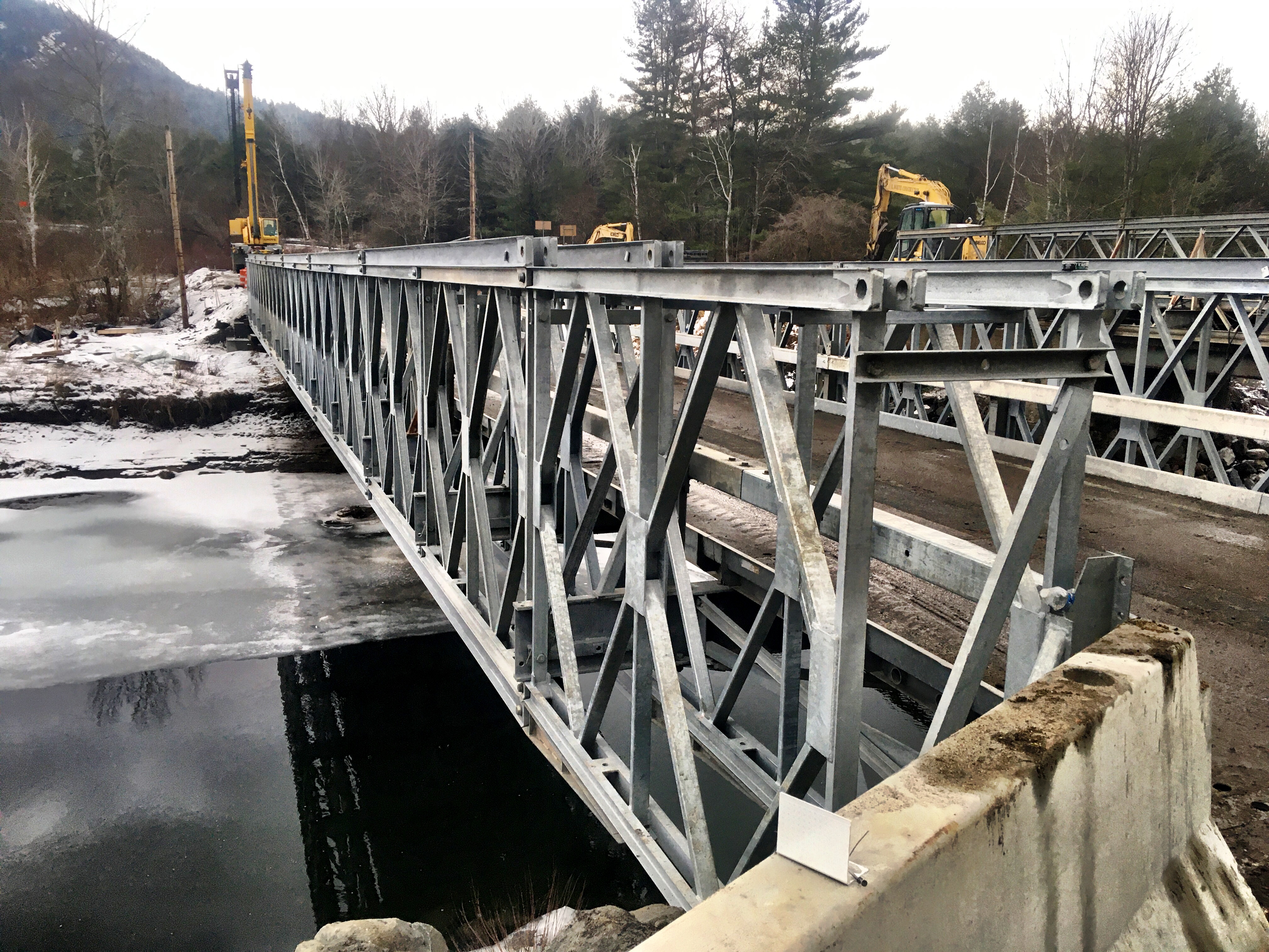 We have had enough snow to cross country ski from home. But it’s getting warmer this weekend, with heavy rain and flooding in the forecast. The first test for our temporary bridge.