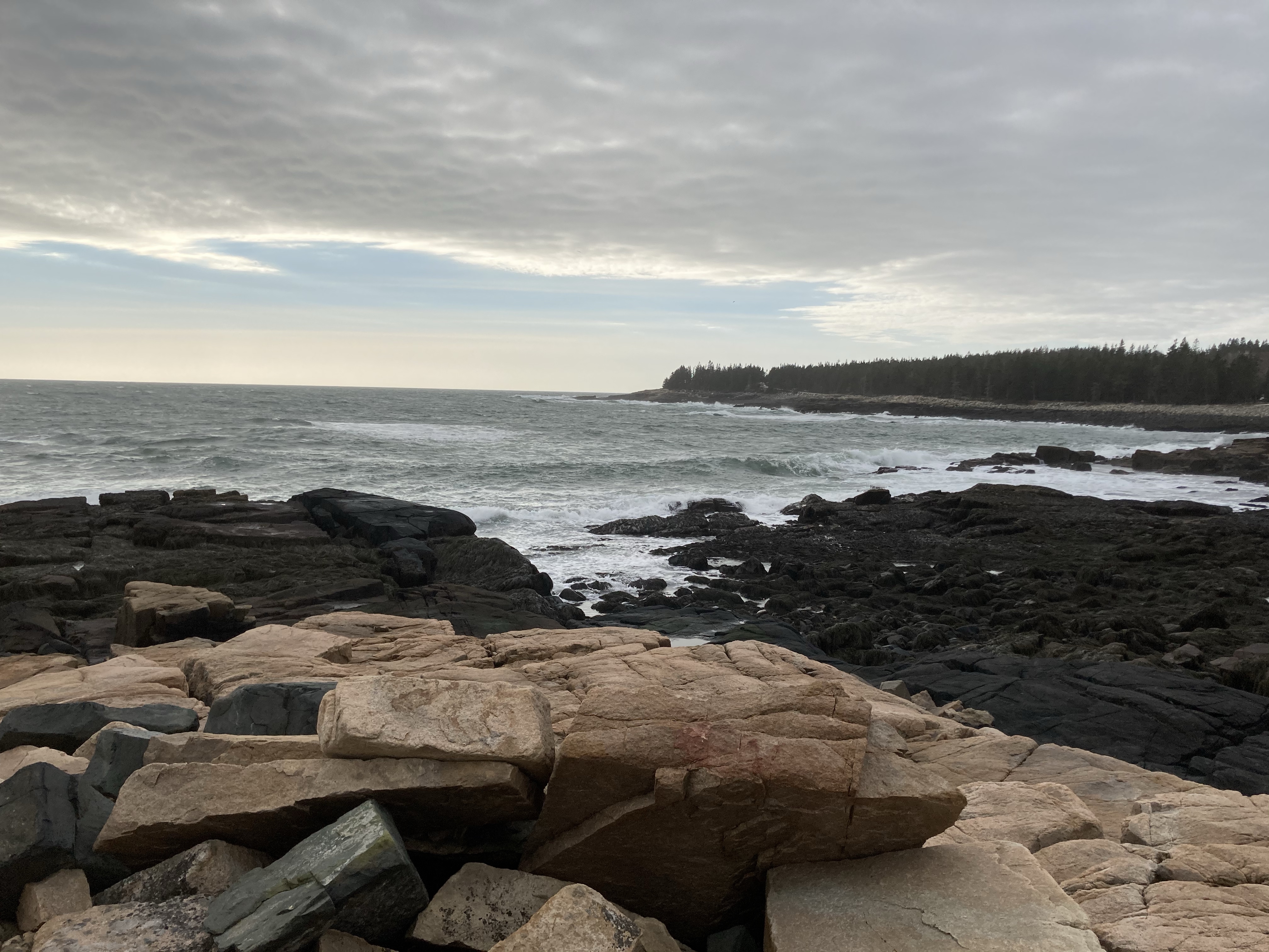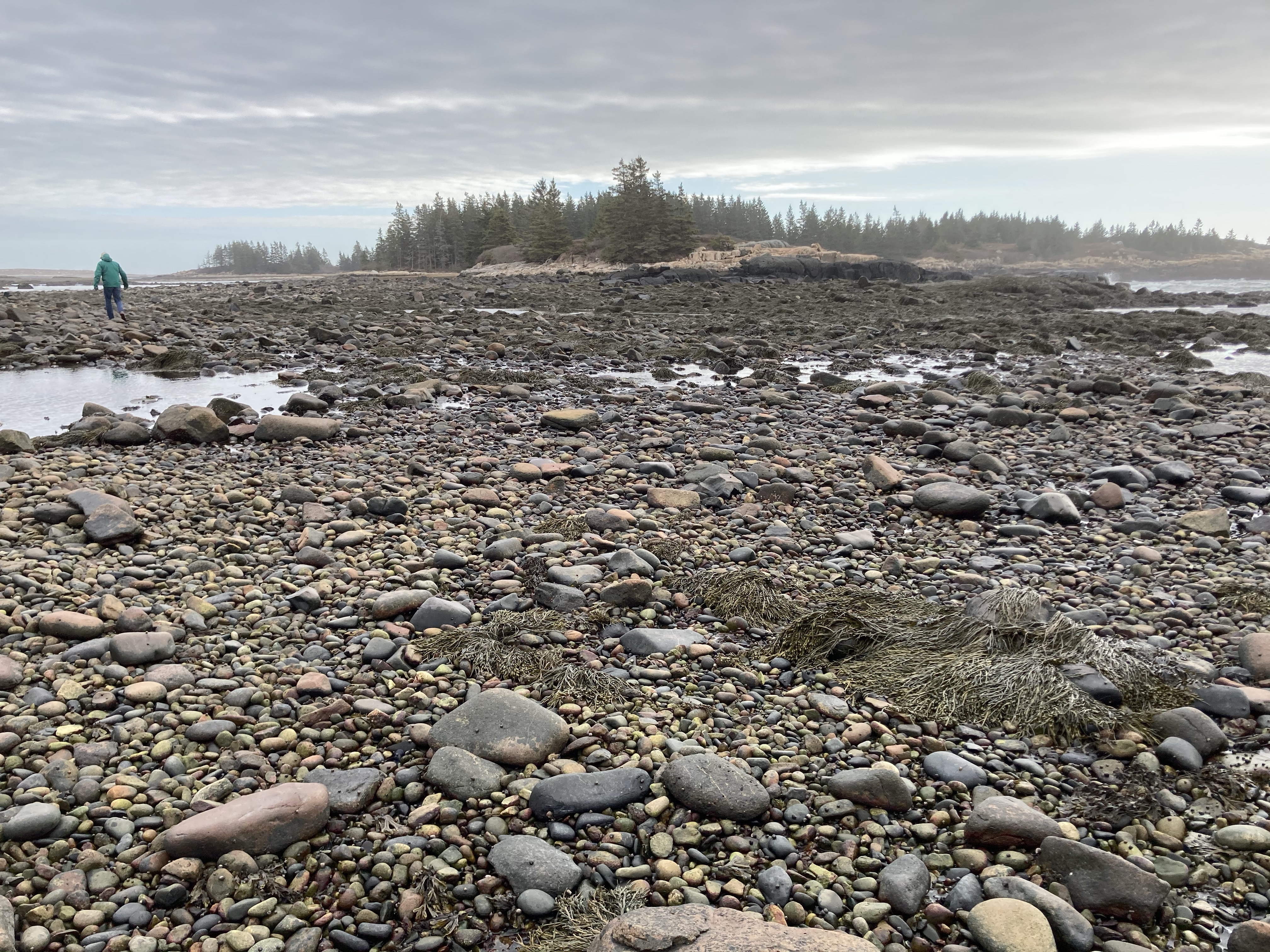 Tim asked me to walk across the great abyss with him. He found a way over large slippery rocks and boulders with seaweed and streams thrown in for fun. I began, then said no way. You have fun. I often balk at his adventures and sometimes rightly so. I’ll admit this time I was wrong. After I gave up and walked along the road and he continued onward, I saw a much more reasonable path over small gravel. So after he disappeared, I too made it to Little Moose Island.