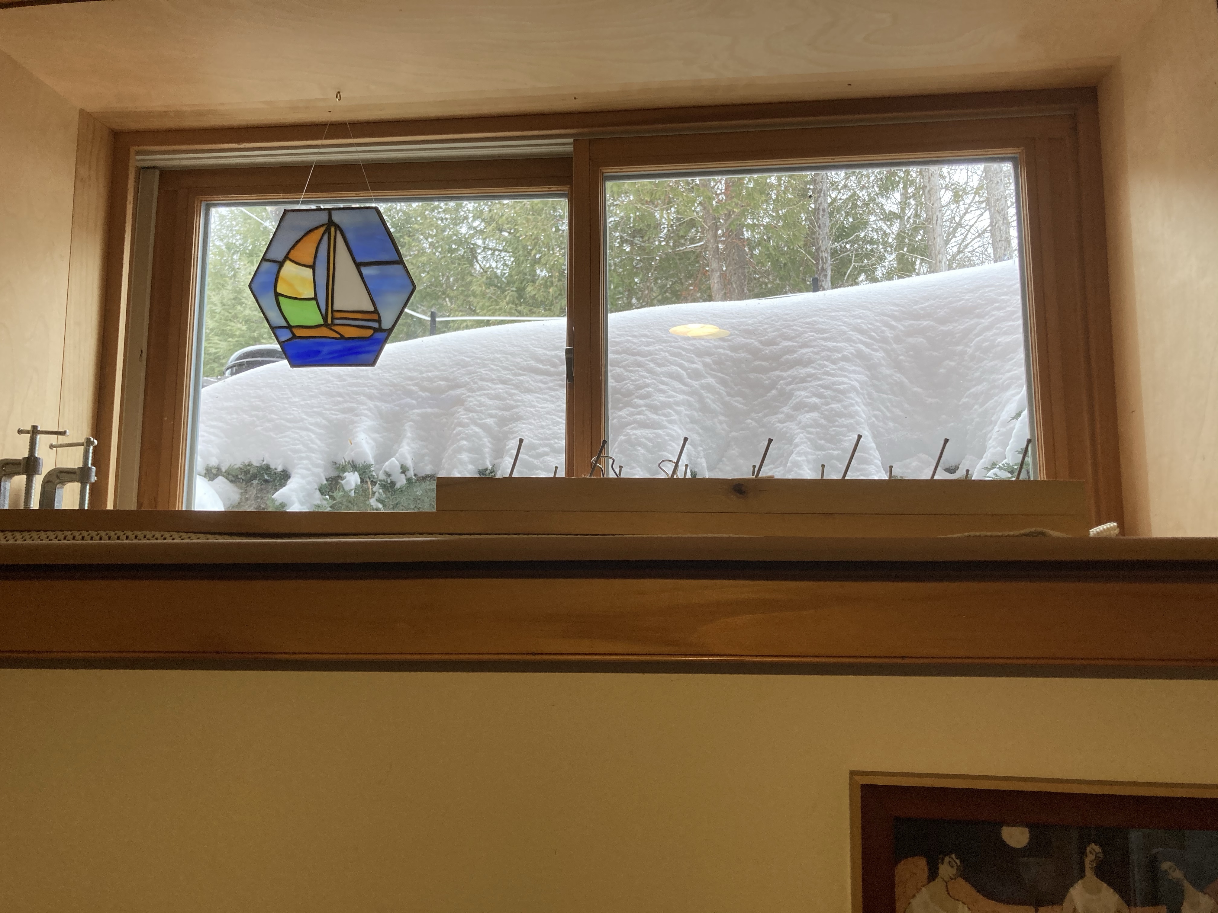 I left Tim in Maine to shovel out wet, sloppy snow. I had my own work to contend with back in the Adirondacks. The northeaster hit us worse than Maine and we got about another foot of dry powdery snow, which landed on top of about 8 inches of crusted snow. I returned to work for a couple of days, but the storm shortened my work day and lengthened my time at home.