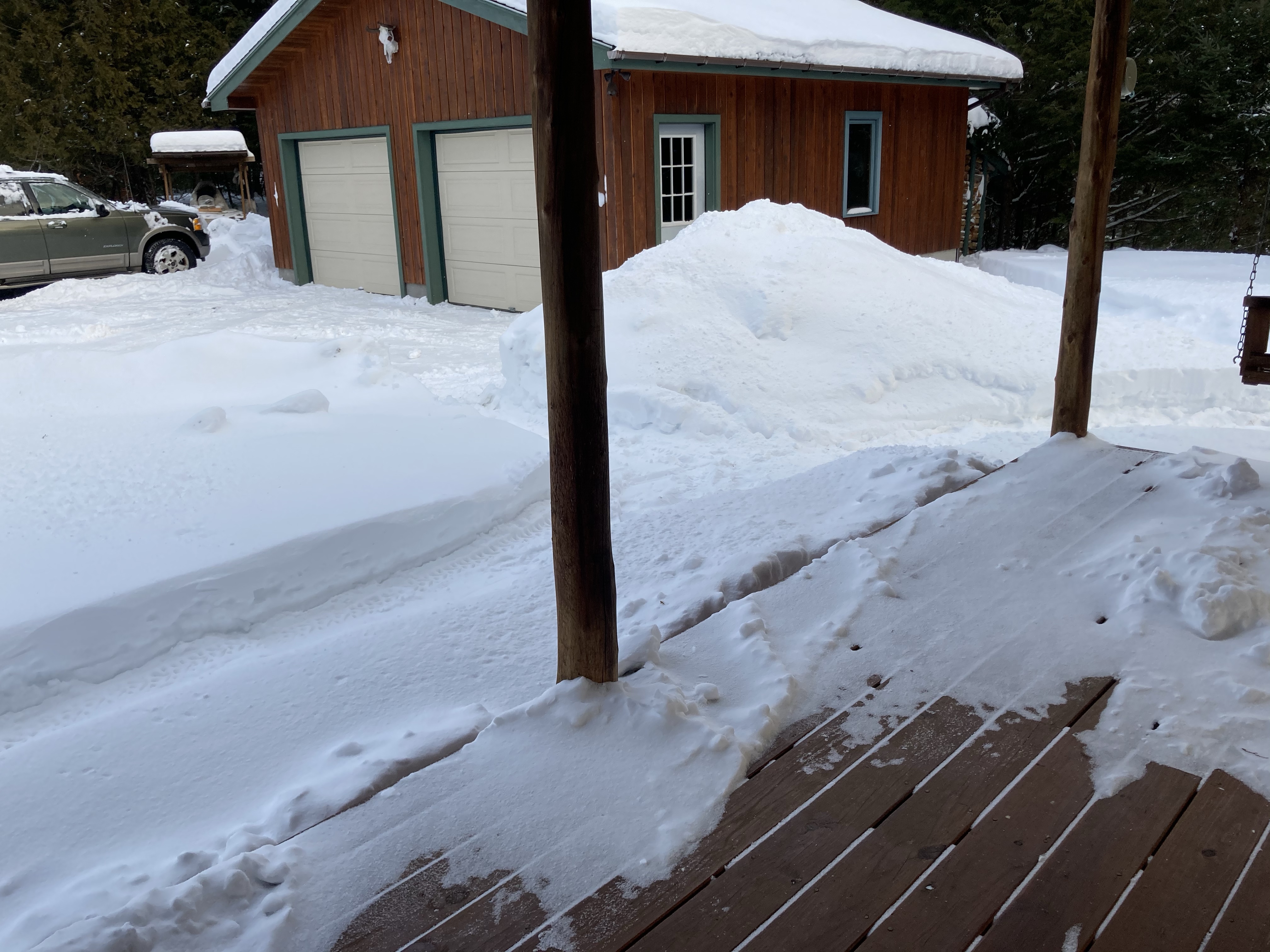I created only the paths I needed to navigate to the garage, the woodpile, the electric meter and the propane fill. And did some hand digging as well. It looks like a rabbit warren now. And I spent a lot of time jockeying cars around. I was too tired from my second vaccine to ski and a snowshoe to the cabin plum tuckered me. But it was beautiful.