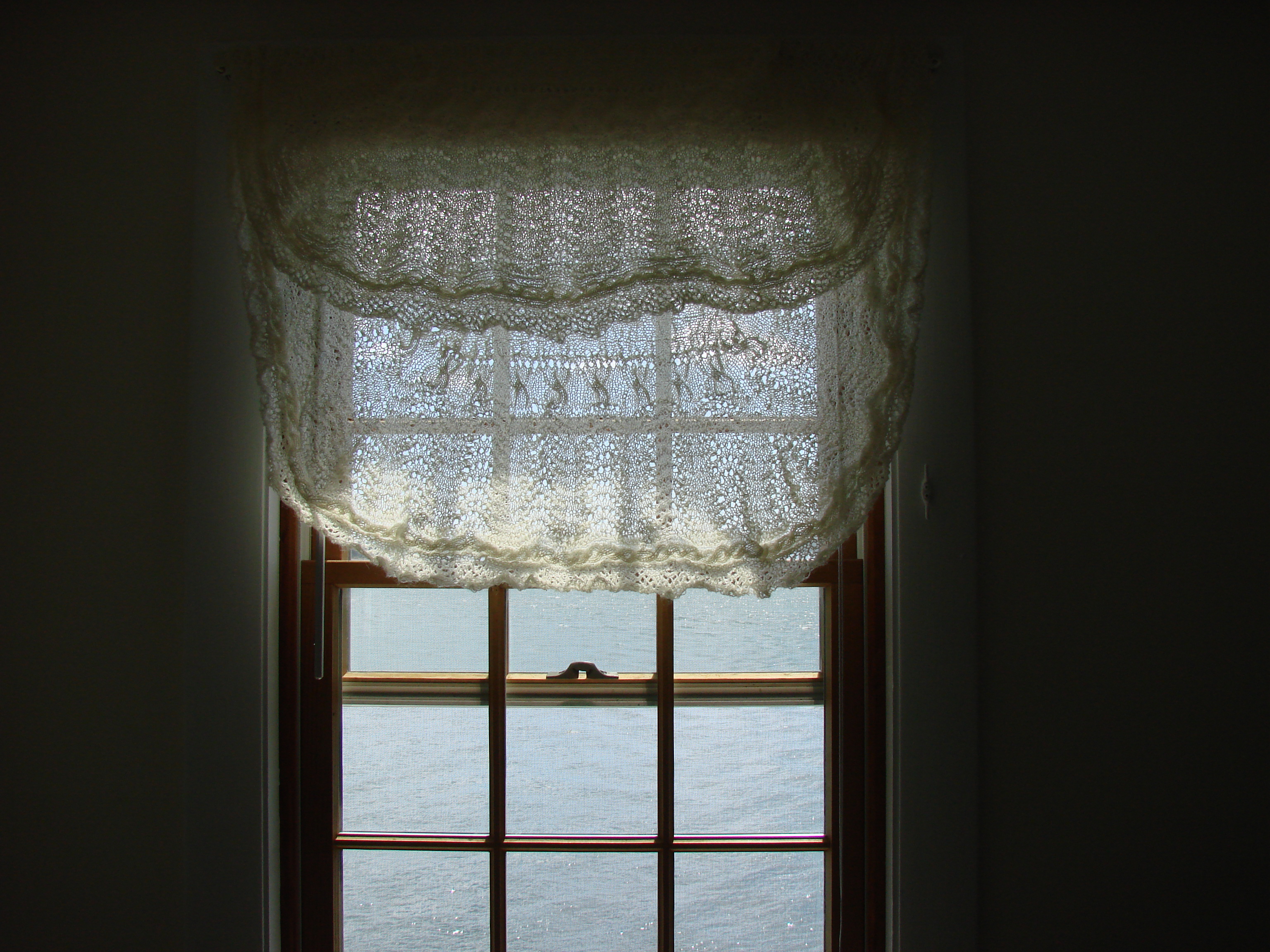 I finished The Pam Shawl I started in June. It’s a beauty, not blocked yet but hanging in my window as a curtain for now. I used Jamieson and Smith shetland lace yarn.