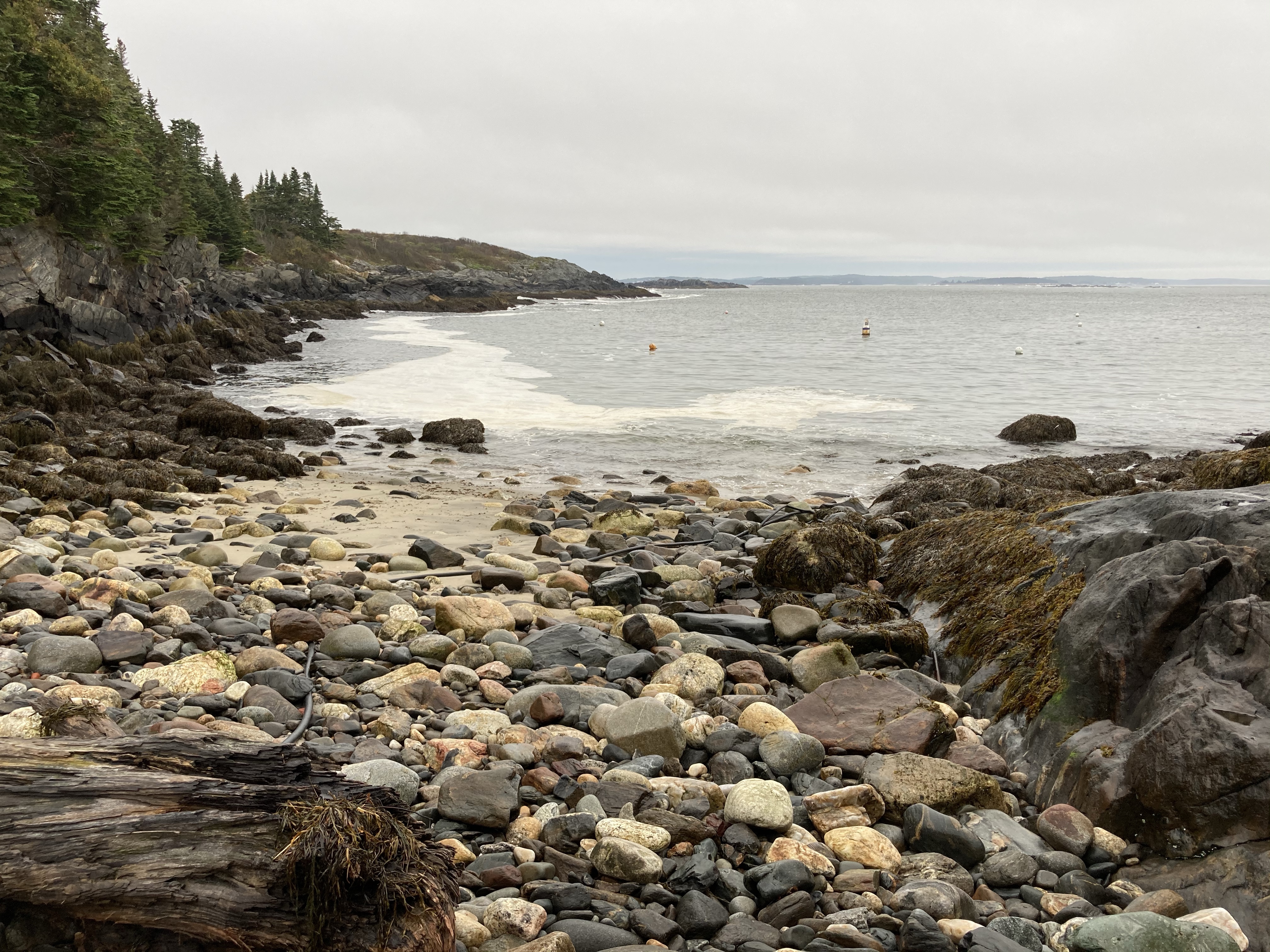 I am not the most graceful person getting in and out of a dinghy on a rocky Maine beach. In my defense, I was weighted down by a drybag on my back with our electronics. As I was climbing aboard the stern, the boat bucked, and with my legs and arms already in the boat, my butt and drybag landed in the water. It was an impossible position to get out of myself and Tim had to haul me aboard. Another memorable dinghy moment. One year, the dinghy flipped and we had to bob for apples in the cove.
