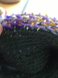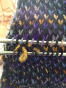 The texture techniques were usually worked in one color but I found some beautiful Koigu yarn while on my trip to Lake Placid and am playing with it. Some successes and some not.