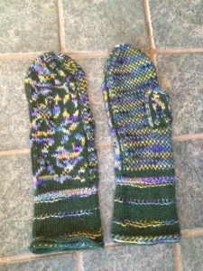 were caked with snow, damp on the outside and frozen – yet they remained warn until the end of the trip. They were stranded colorwork – knit with two yarns at once, when one isn’t used, it is carried behind the work and forms a loose, double layer fabric. Plus those mittens have an additional alpaca lining. The lining felted a bit from my sweating palms, and that is part of the process. The felted fabric, think boiled wool, is denser and warm.