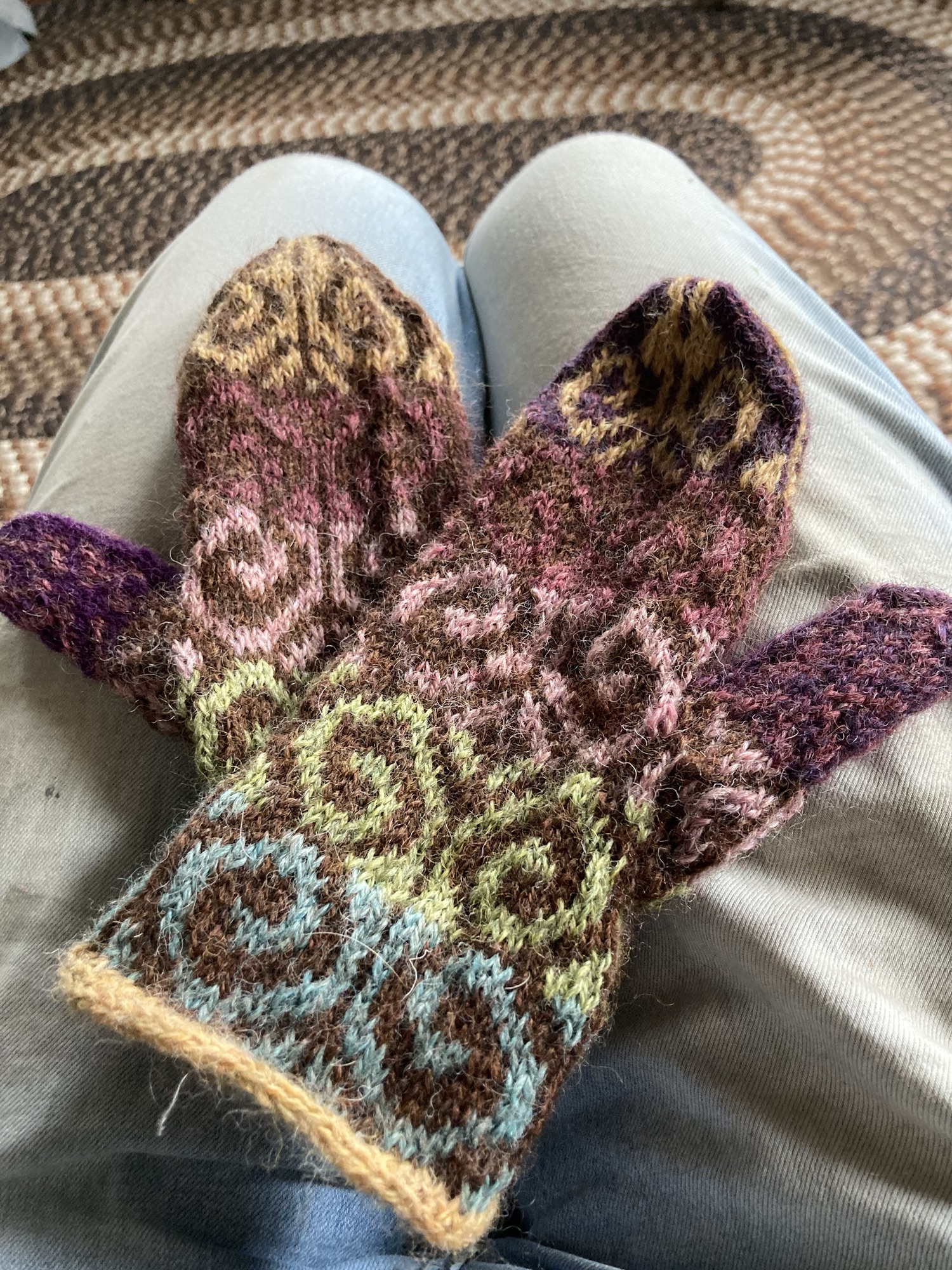 And while here, I finished knitting a baby bonnet in silk/wool, which I spun while at Bass Harbor Head Lighthouse, a pair of mittens and started a hat. All in a day’s work.