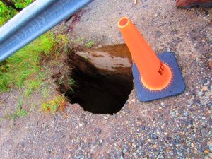 During a fairly big rainstorm, the beaver dam on the mountain next to our house failed. Tim thought he heard an engine running and went to check it out. This is usually a small stream. It became a raging river. We did not swim in it.