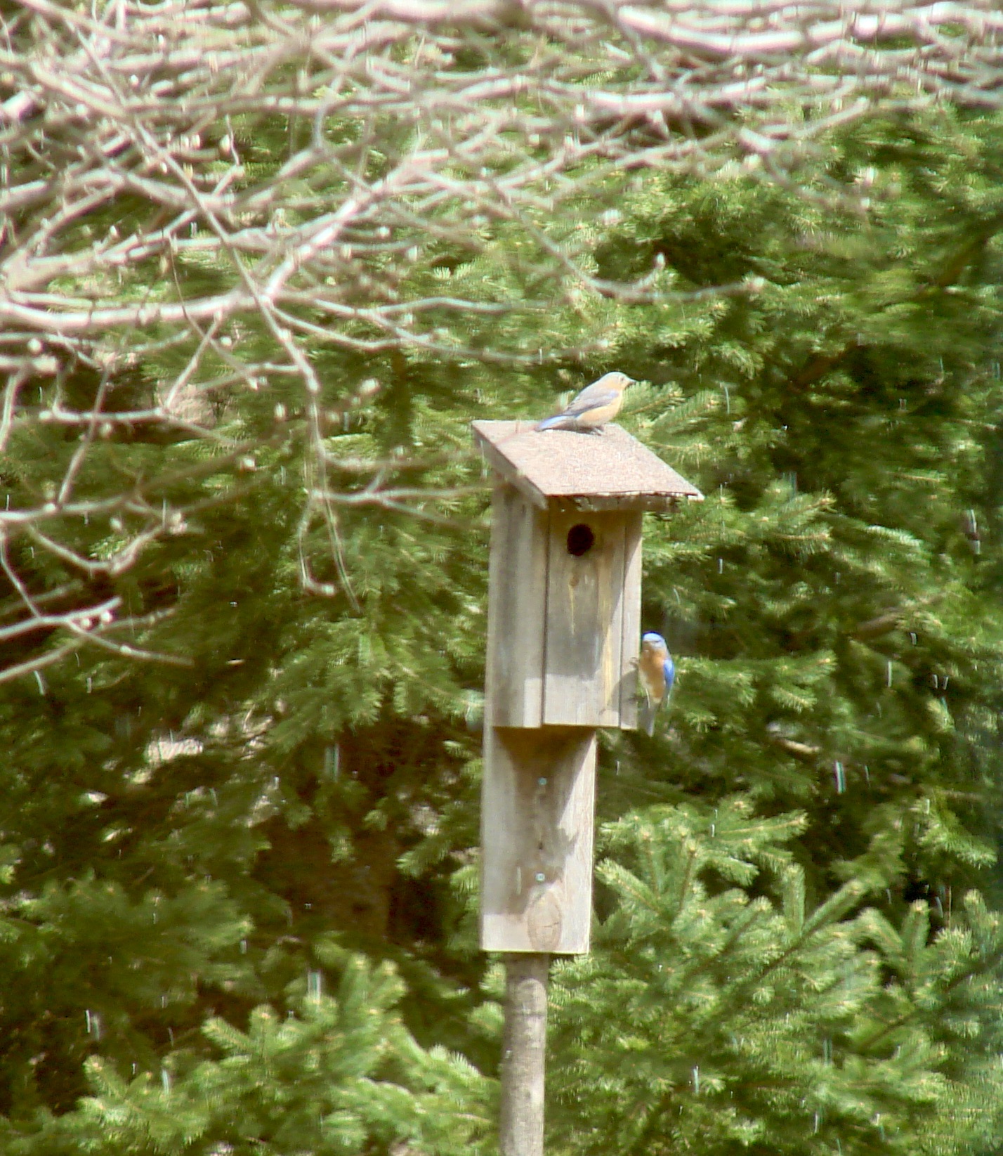 The blue birds picked the perfect box to build their nest. We won’t be here to follow their activity though and the hummingbirds and bees will be on their own. Who knows what mischief they will get into.