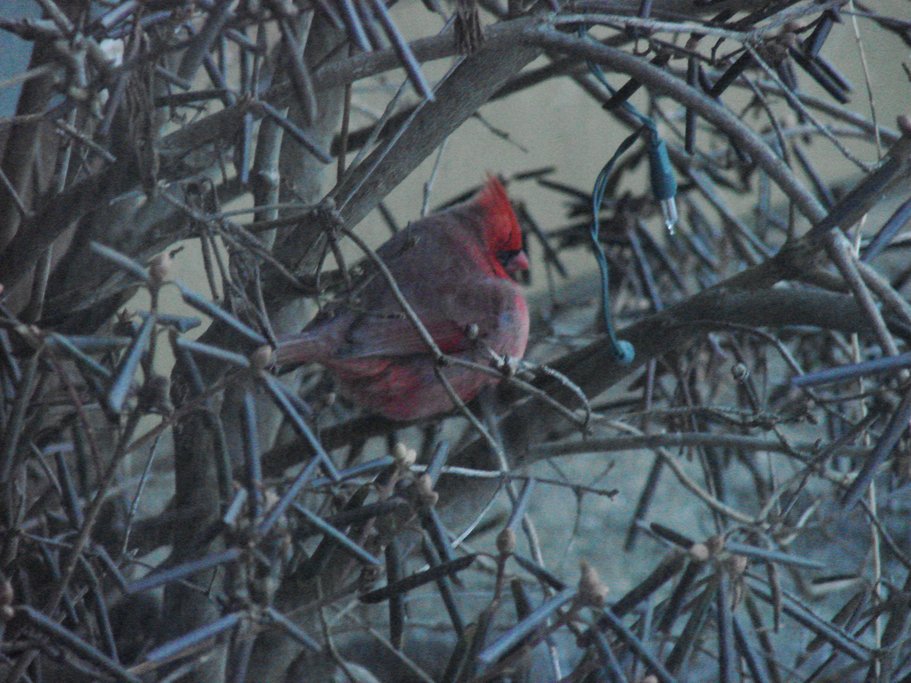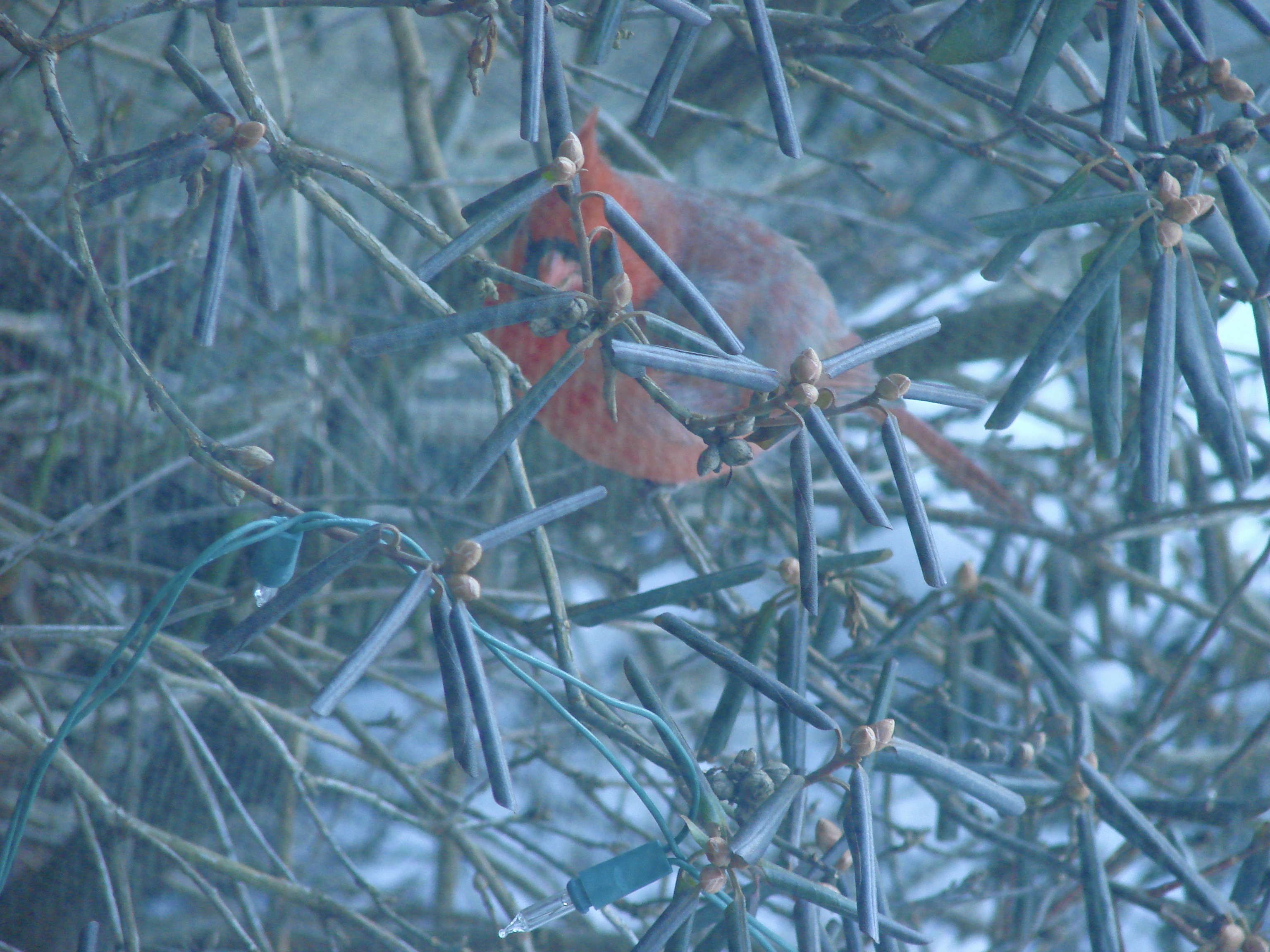 The Cardinal was much more discreet, first hiding in the rhododendron.