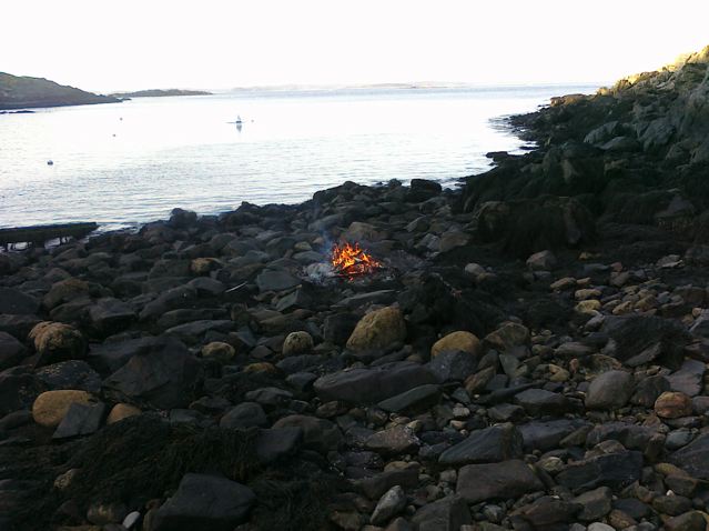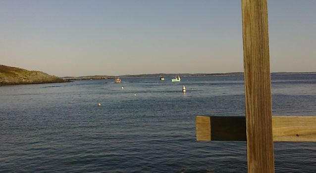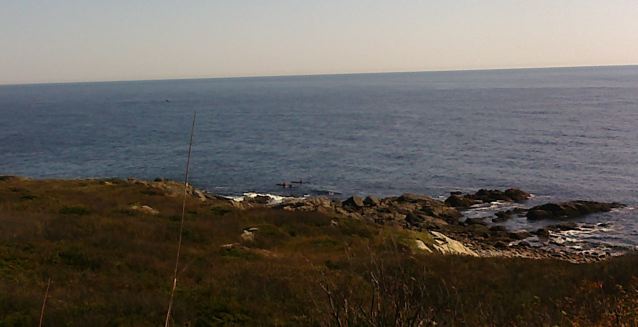 Well of course not. We have the cats with us. But even during the storm last night, a boat was tucked in behind the lee of the island. They must have been waiting for the tide to change because the weather didn’t really get better until later today and they were gone by early morning. We had several hours of sun today, which was very nice and brightened our moods. Even the cats were a little stir crazy. We were all happy to be out for a while today. Lobsterman were back out and a tanker went by about 3 miles south of the island this afternoon. There’s a hawk, which circles the east and south sides of the island and a few seagulls about. There’s an assortment of migrating birds passing by and attracted to the light.