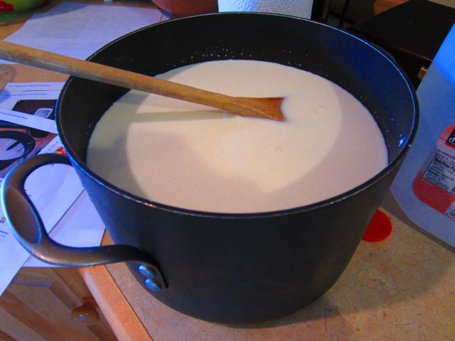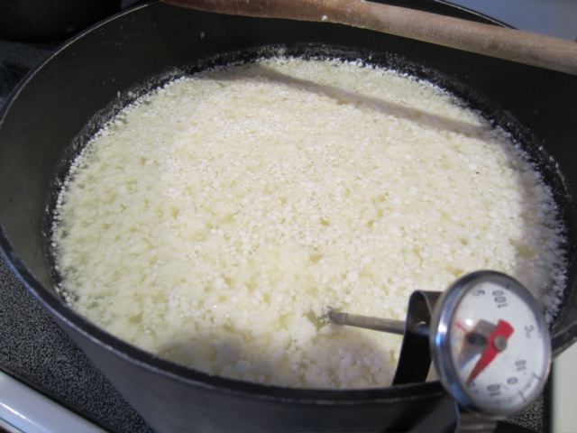 Lime is calcium hydroxide and is called “cal” in Mexican recipes. It softens the corn, boosting its nutritional value and helps remove the husks. Water, hominy and cal are heated and then left to soak overnight. Next the corn is ground into masa, traditionally between two stones. Since I live on an old sand quarry, I opted for my food processor.
