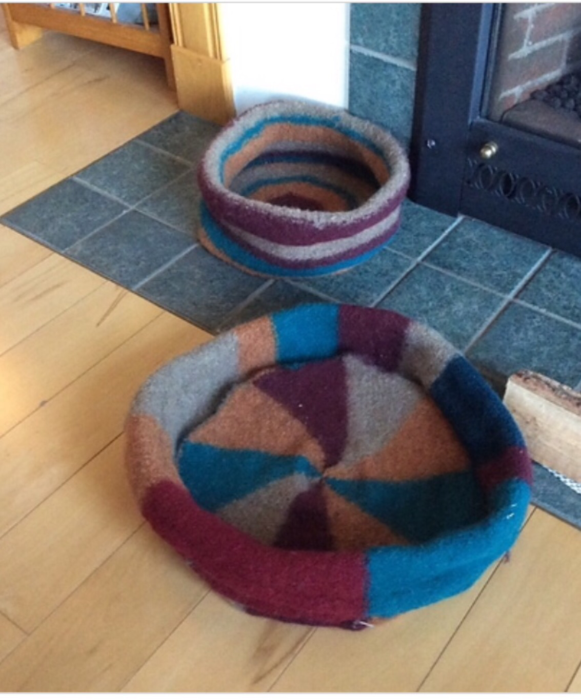 I finished the cat beds but sadly, my older cat, Loki, only used his briefly before he died just after Thanksgiving. His first diagnosis was wrong but obviously something was brewing.