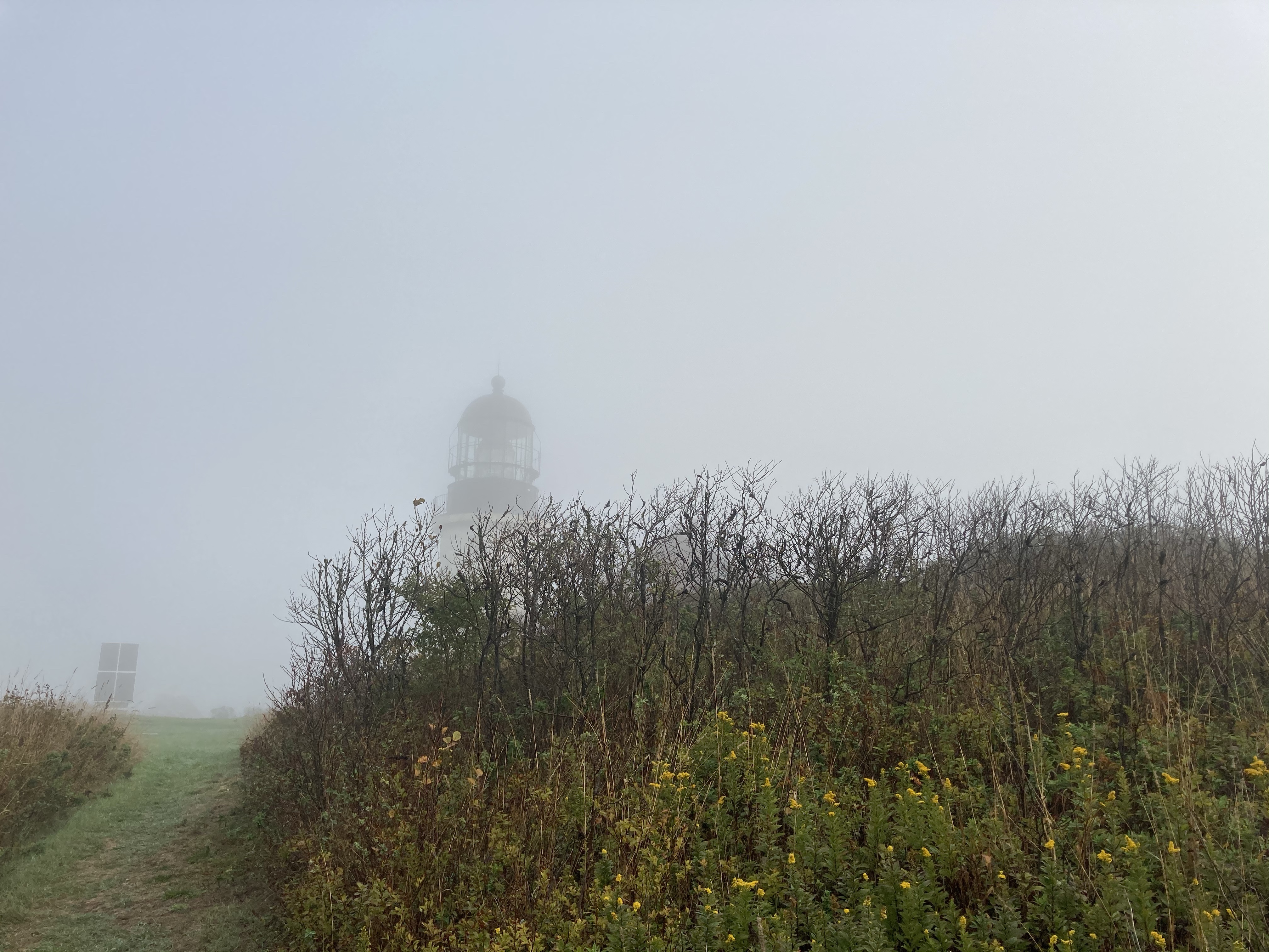 I mean fog. We had another perfect day of lighthouse weather. Rain and fog. The fog horn blew all day but it’s much quieter than I remember. The windows are closed but I think it’s more than that.