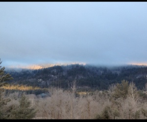 We went for a several hour, cross-country ski explore last weekend when the temperature was in the teens. Here’s the view from up behind our house.