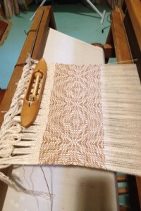 The first is <a href="http:// http://pagead2.googlesyndication.com/pagead/show_ads.js“>Twined Knitting: A Swedish Folkcraft, published by Interweave in the 1980’s. Used copies now fetch more than $50; it has become a collector’s item because it sold for $19 new. It has the history of twined knitting, techniques and patterns. I am working on a sampler mitten and live the fabric. It’s a dense, double layer, stretchy fabric.