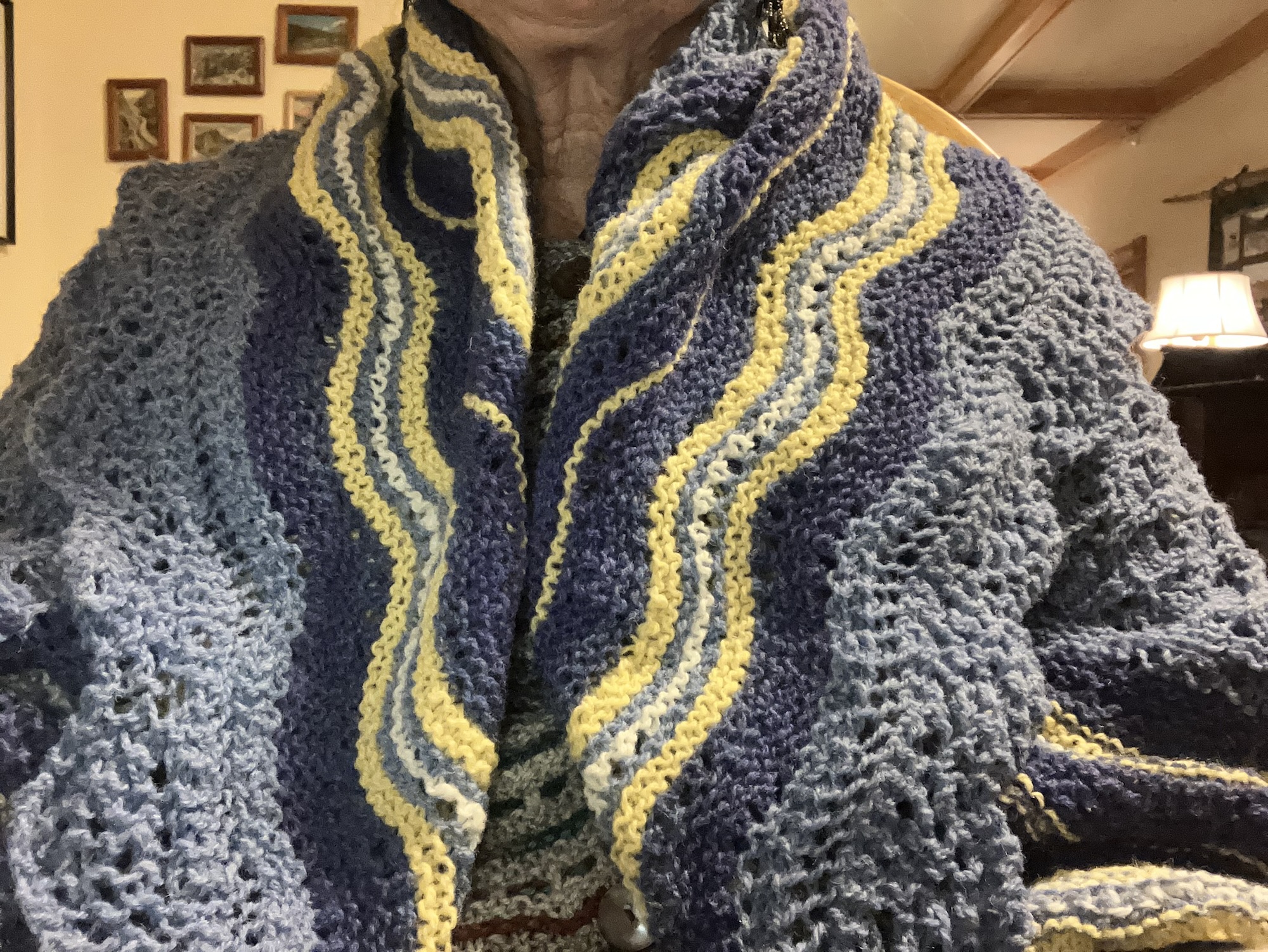 It’s from Heirloom Knitting’s Shetland Hap Shawls: Then & Now. I’ll wear it now and give it then. The Jamieson and Smith shetland yarn is so soft and warm.