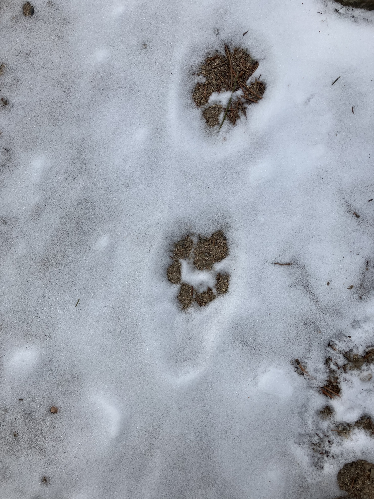 That’s the imprint of my right hand during one of several post hole topples. I didn’t catch the two that left me lying in the snow. All was well at starting elevation, 50’s and dry trail, so we left our snowshoes in the car. Back home in the Adirondacks it’s a requirement. Here it’s just bad form.
