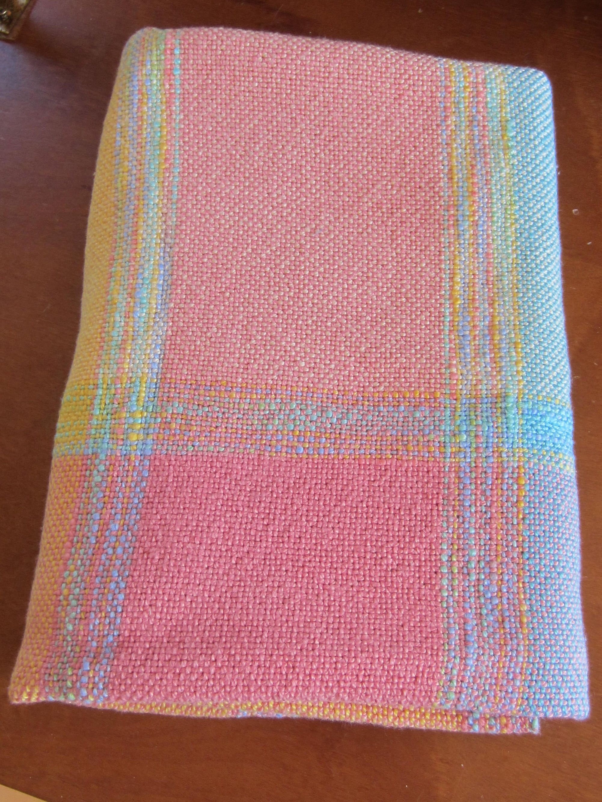 This baby blanket came off the floor loom and has been shipped to the new baby. I love the colors and it is quite soft.