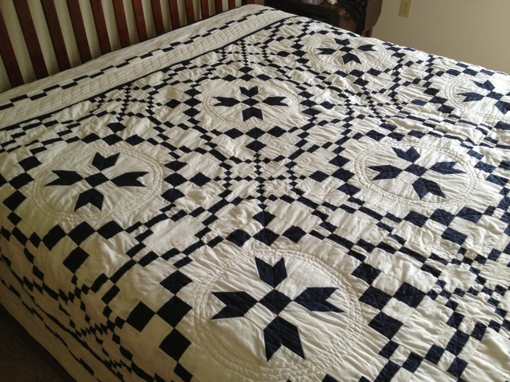 And finished my tee shirt quilt a few weeks ago. We used it for quite a while before I tucked in all the ends.