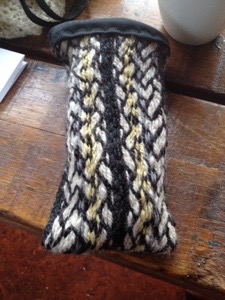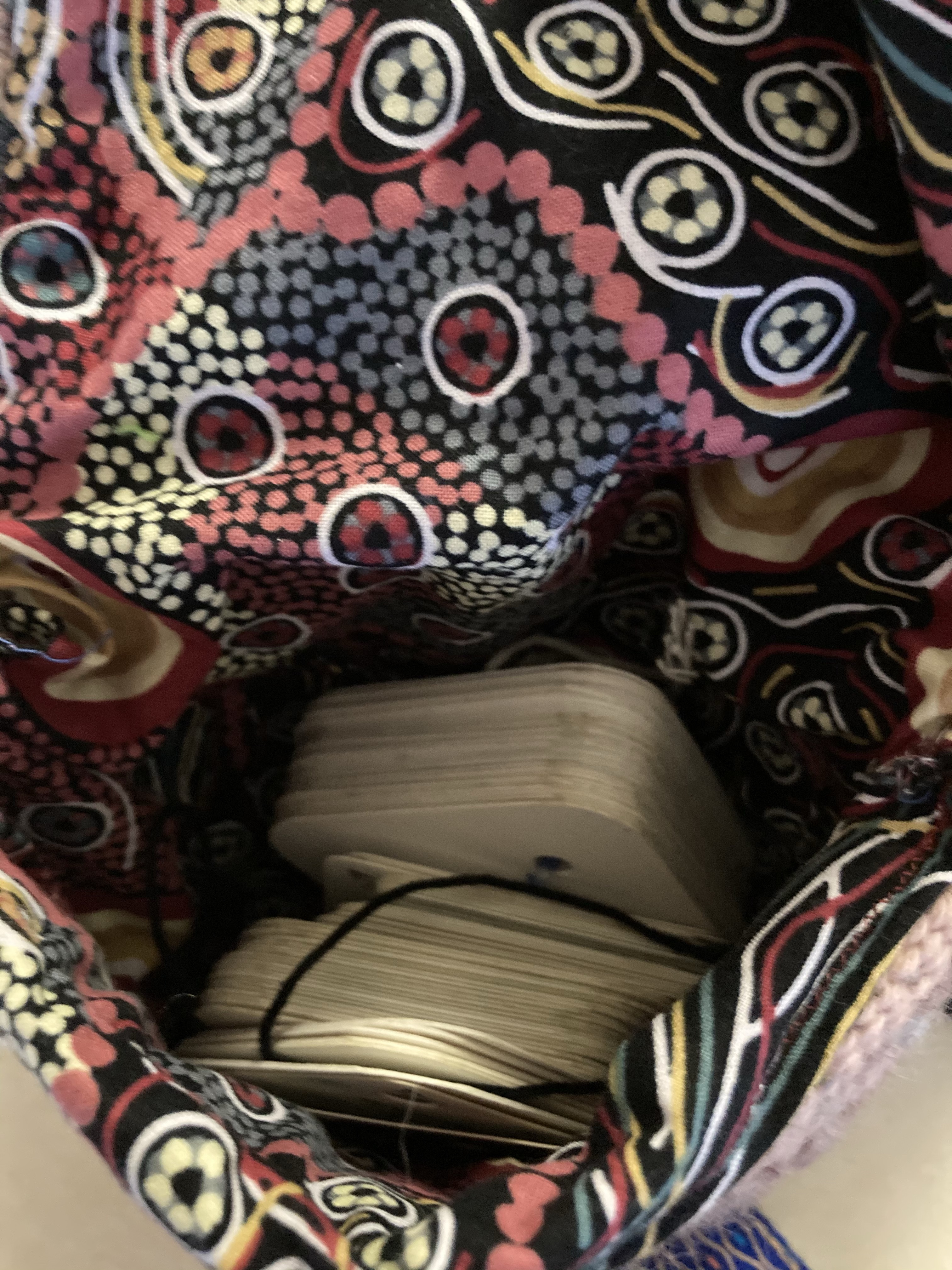 I am working on a second strap – belt, camera strap – with the cards, in wool. Pretty.