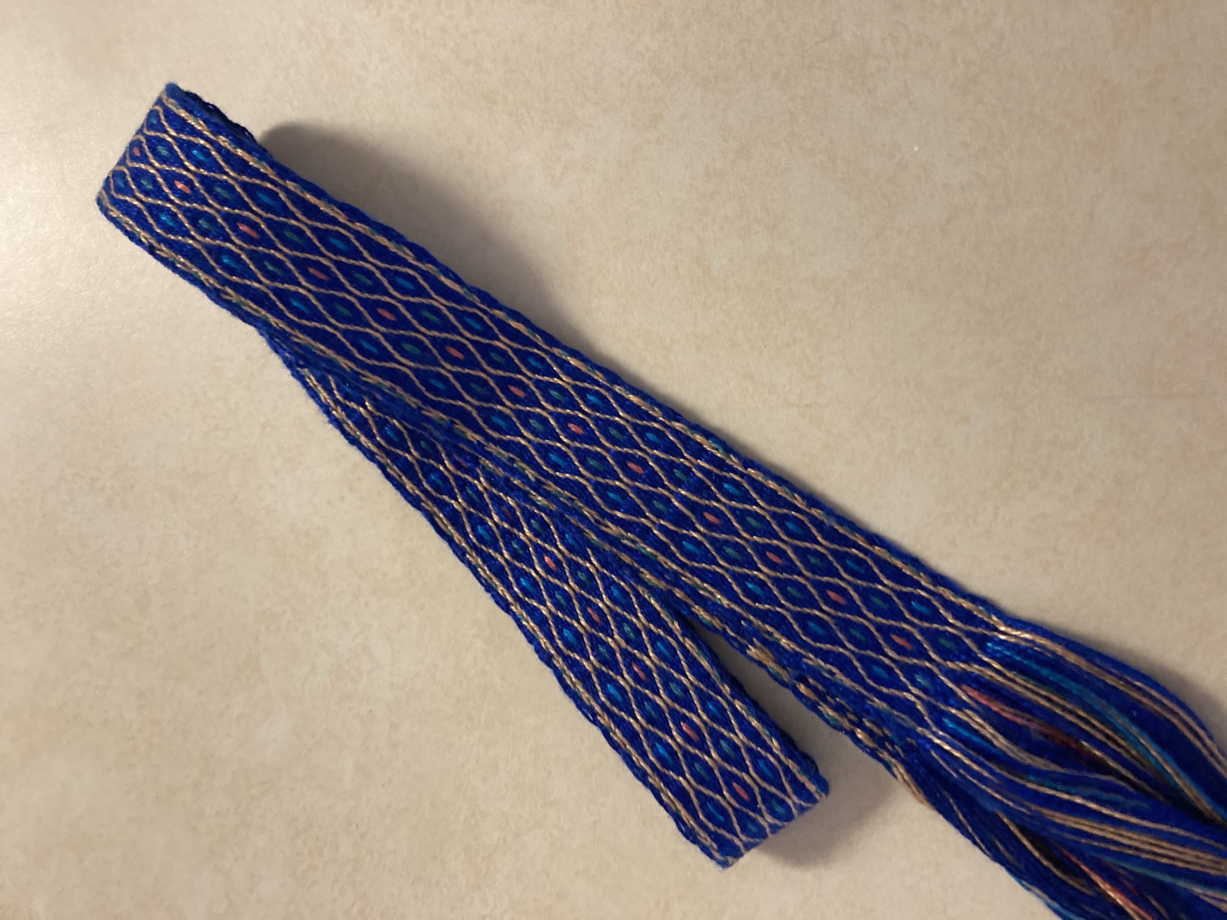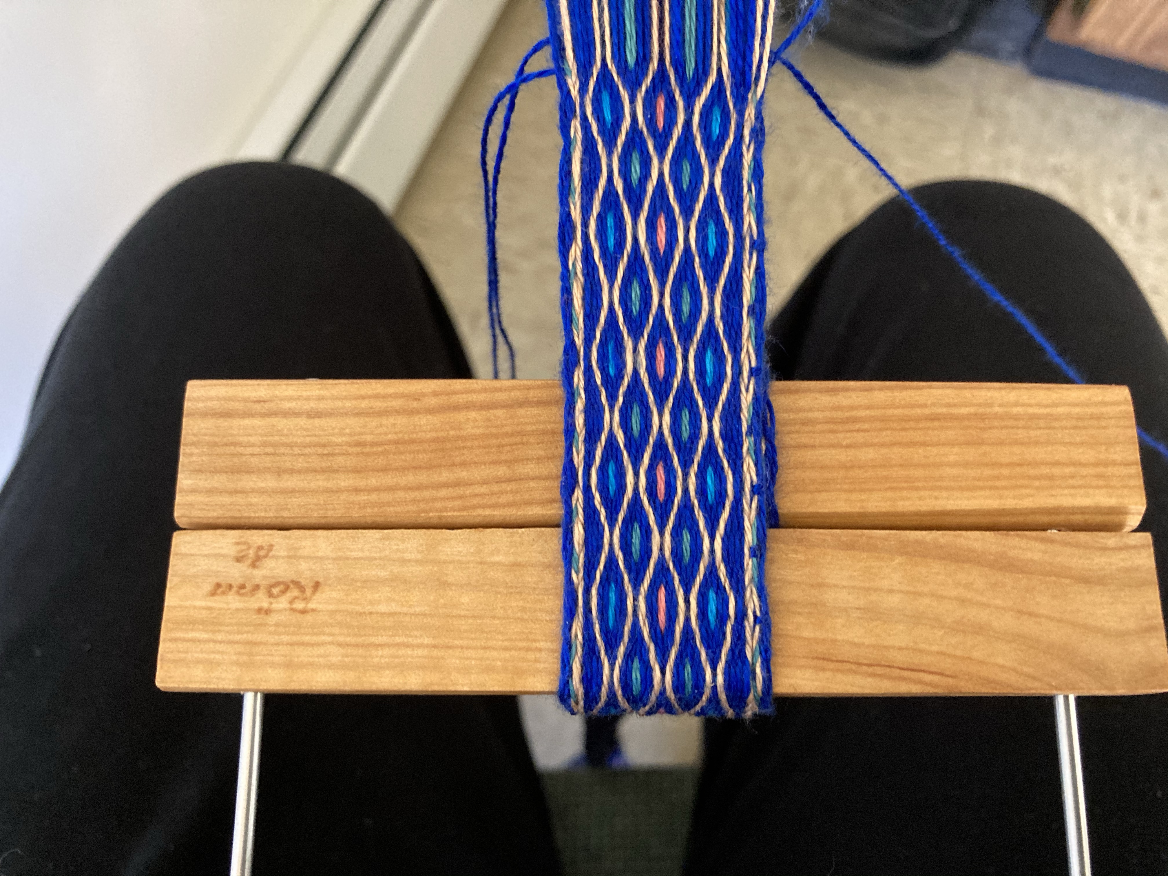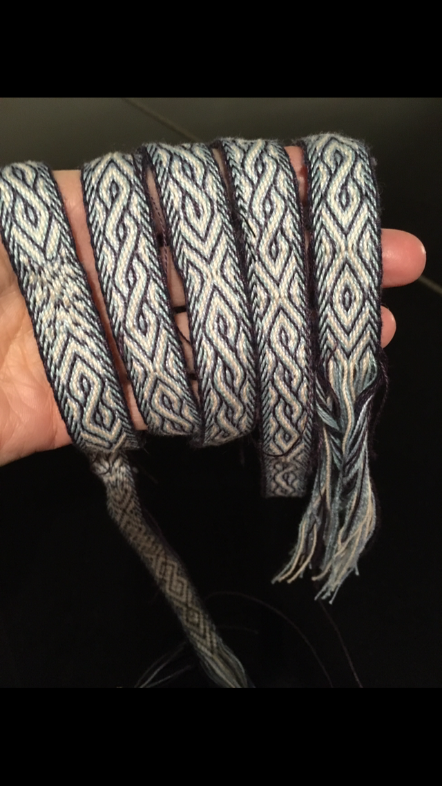 Tablet weaving is progressing swimmingly. That’s where I use cards with 4 holes in them as my loom. I have been wearing my new belt for several weeks.