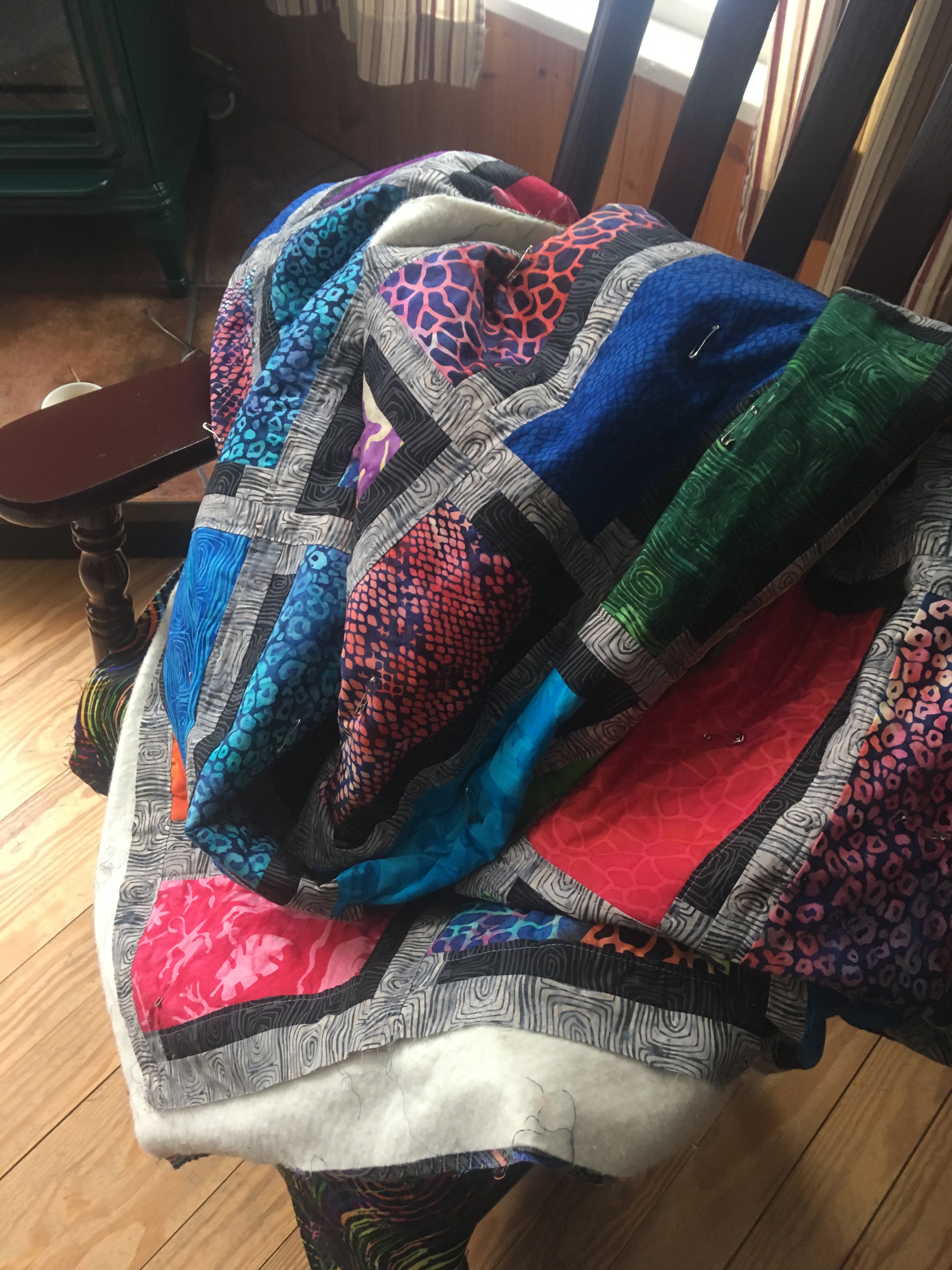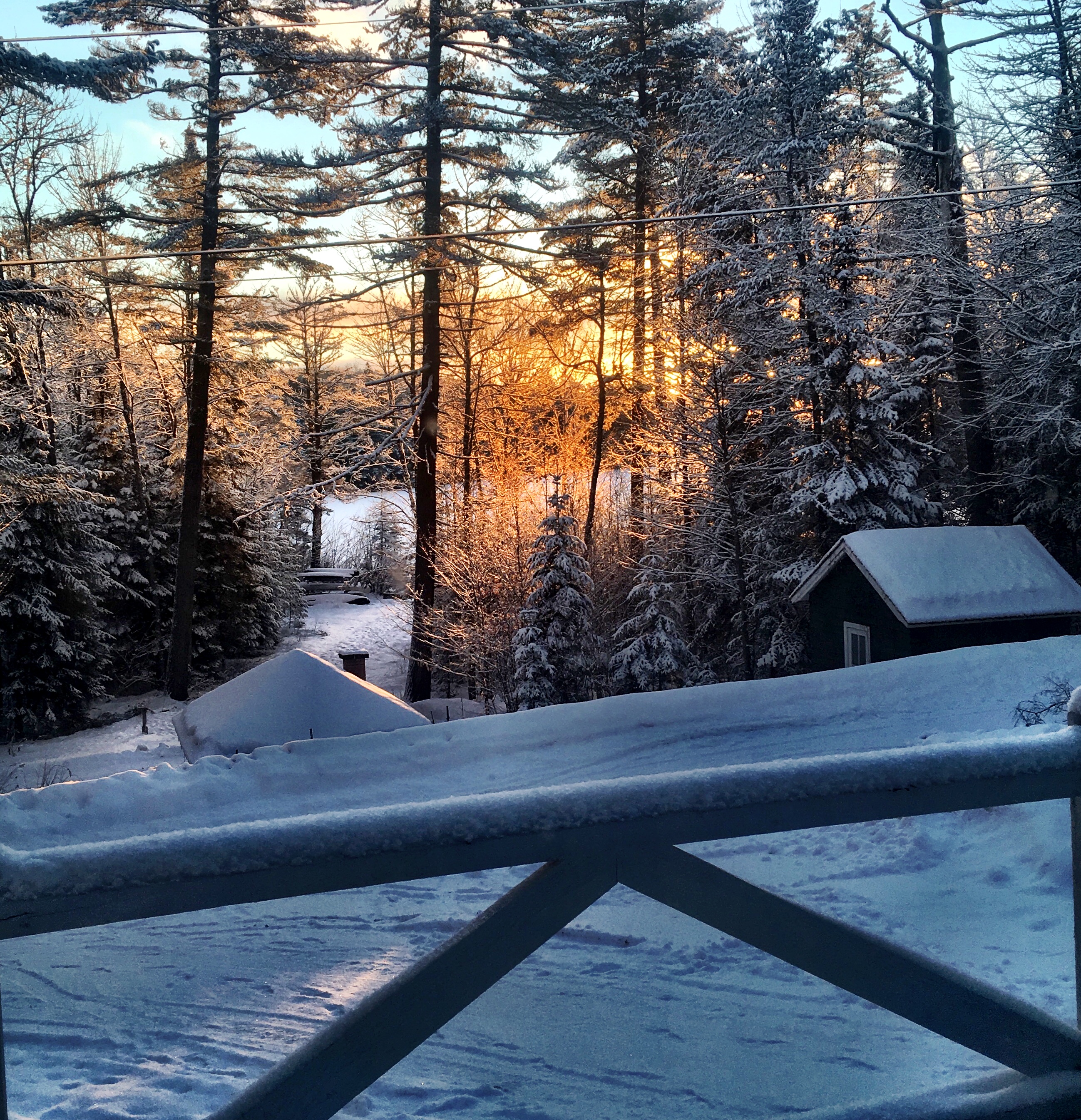 I had a reprieve from chores for Christmas. We went to a cabin on a lake in the woods, with heat, a kitchen and bathroom. All with plumbing that worked and didn’t leak. It was beautiful and relaxing. We took walks and played games. I knit mittens and sewed in threads on a quilt.