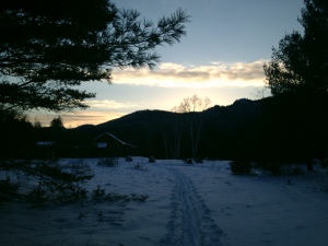 Someone has busy around here. We took a walk up the hill out back and saw an amazing engineering project. It raised the pond level by 5 feet. These were no small branches used to shore it up. They must have had help.